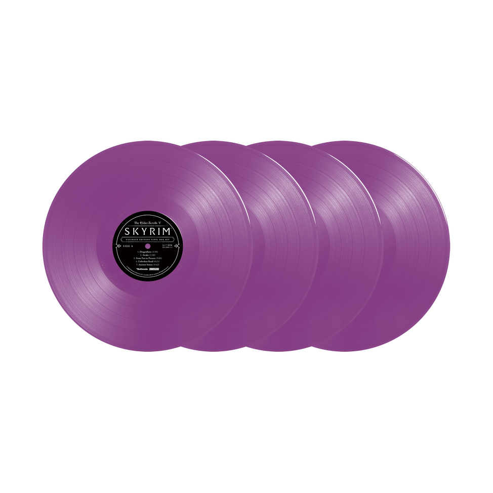 Updated and remastered for 2024, THE ELDER SCROLLS V: SKYRIM *ULTIMATE EDITION* 4LP VINYL BOX SET is a formidable volume, featuring four LPs containing the full 52 track original score by BAFTA award-winning composer Jeremy Soule (Morrowind, Oblivion, Guild Wars, Neverwinter Nights, Star Wars: Knights of the Old Republic).