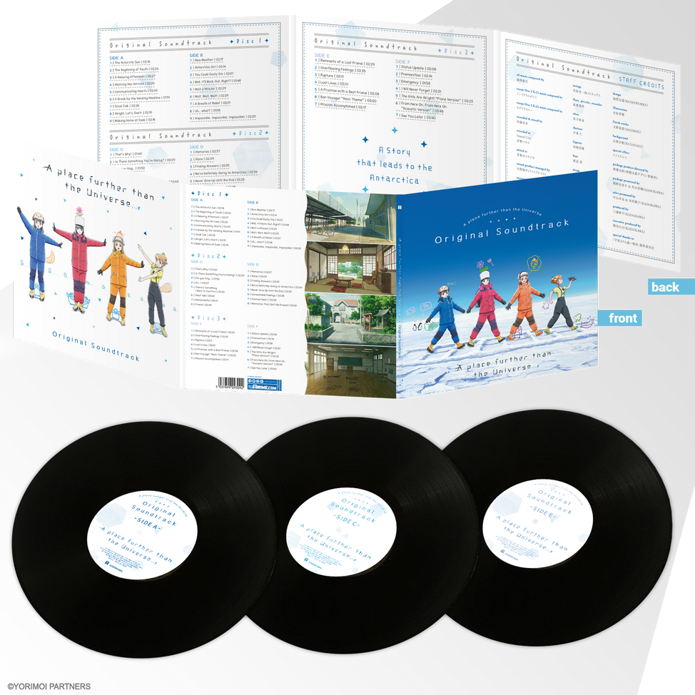 This release includes the full original soundtrack to the series, containing a wealth of heartfelt compositions from Yoshiaki Fujisawa (Goodbye, Don Glees, Revue Starlight, Land of the Lustrious) which accompany the show's emotional coming of age adventure into the Antarctic unknown.